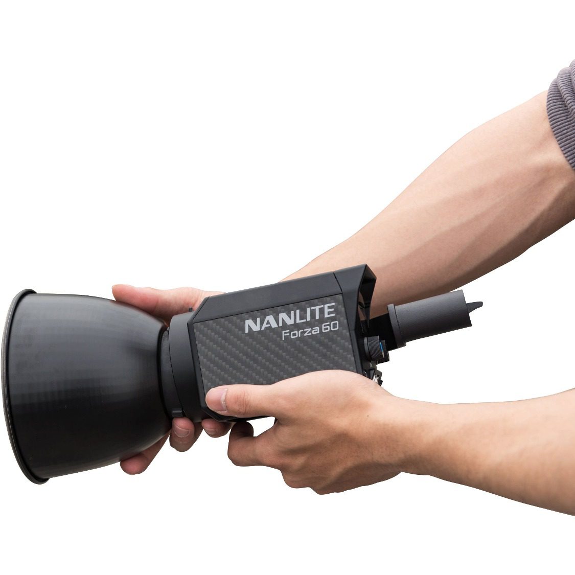 Le spot LED Nanlite Forza 60 est à la fois puissant et compact. Il ne pèse que 0,8 Kg. L’ensemble pèse 1,3 Kg. Ses dimensions sont de 194.3 x 105.0 x 82.0 mm. Il s’insère facilement dans le setup. Le réflecteur 55 degrés et l’étui de transport sont inclus.