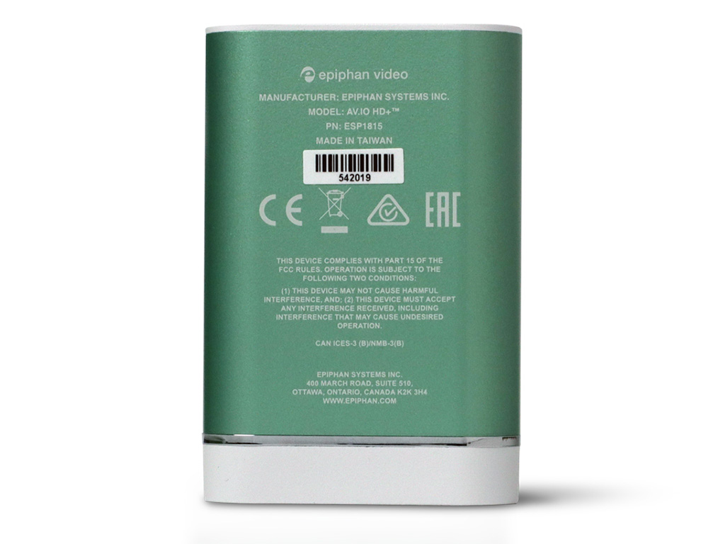 L’Epiphan AV.io HD+ est un outil de capture vidéo haute définition facile à utiliser, conçu pour les professionnels qui cherchent à capturer et enregistrer des contenus vidéo de haute qualité. Branchez simplement l’AV.io HD+ à votre ordinateur via un port USB 3.0 et vous serez prêt à capturer des vidéos en résolution jusqu’à 1080p à 60 images par seconde, sans compromis sur la qualité.