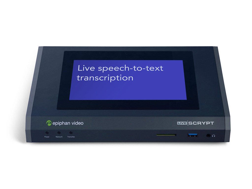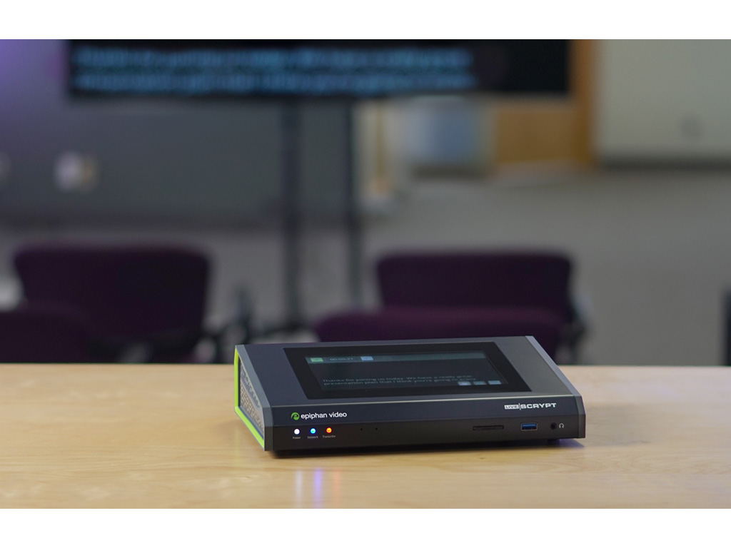 Découvrez Epiphan LiveScrypt – le dispositif de transcription automatique en temps réel idéal pour vos besoins professionnels ! Que vous organisiez des conférences, des réunions, des présentations ou tout autre événement, LiveScrypt vous permettra de capturer et de transcrire instantanément le discours en texte.