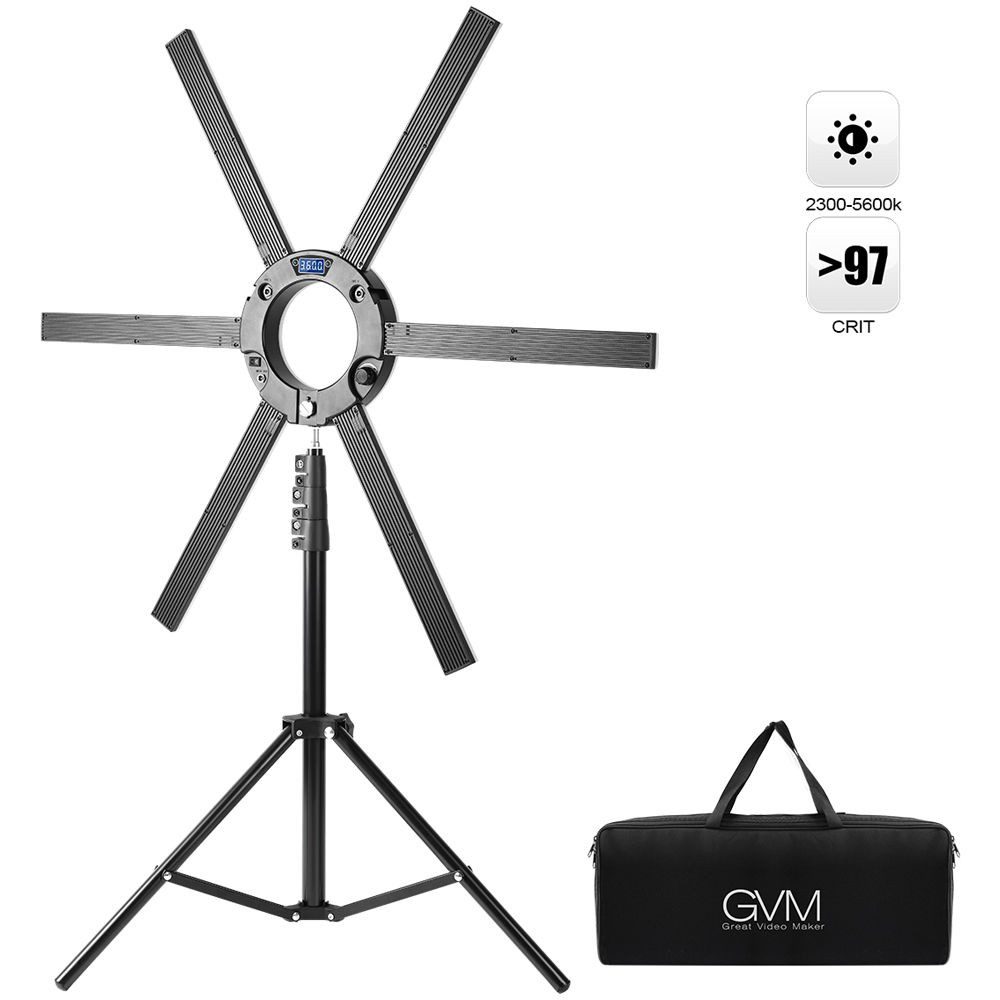 With a clever design that features removable components and a camera mount that puts a new spin on the concept of « ring light », the GVM-600S LED Ring Light from GVM has six 13″ LED Light Bars configured in a star-like shape connected to, but removable from, an open circular camera mount that you’re meant to shoot through as you would a ring light. The 600S has a wide 120° beam spread with the bars attached, but the beauty of the design is that you can remove one or any number of them to use as a hair light or sidelight—or anywhere you like to create a sense of depth.