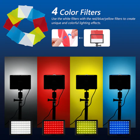 - Soft & Flattering Lighting– Use the white filters as diffusers to soften the light and set up the lights on each side of your laptop or monitor so you look well-lit on every video call. Alternatively, use the white filters with the red/blue/yellow filters to create unique and colorful lighting effects for game live streaming, vlogging, and more.