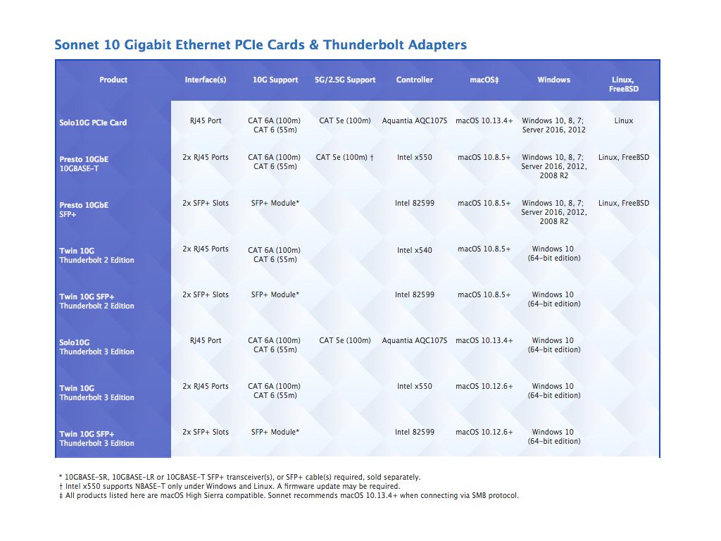 Sonnet Solo 10GBASE-T Ethernet 1-Port PCIe Card [Thunderbolt compatible]