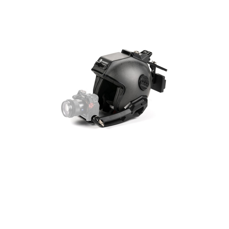 Conçu pour faciliter la création de séquences à la première personne, le Hermit se distingue par sa capacité à accueillir diversement caméras, alimentations externes et accessoires, tels que des transmetteurs vidéo sans fil. Grâce à ses deux bras de montage à rosette articulés, vous pouvez stabiliser votre équipement, qu’il soit à l’avant ou à l’arrière du casque.
