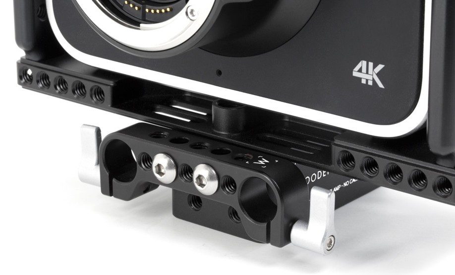 Can also be configured to attach directly to the base of the Blackmagic Cinema Camera with locating pin and screw to provide lightweight 15mm rods at correct lens height.